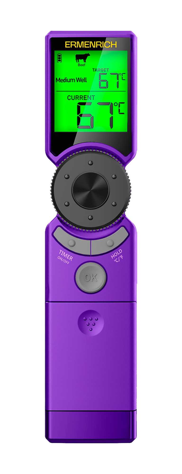 Scoprite Ermenrich BBQ GT10, il vostro nuovo compagno di cucina intelligente. Con esso, qualsiasi carne, che si tratti di pollo succoso, tacchino magro, bistecca di manzo o agnello succulento, verrà cucinata esattamente come la volevate. Il termometro è dotato di programmi preimpostati per i tipi di carne più comuni, suggerendo automaticamente la temperatura ideale e il tempo di cottura target per risultati impeccabili. Cuocete in sicurezza al forno, alla griglia o al barbecue e gustate ogni volta dei pasti deliziosi.